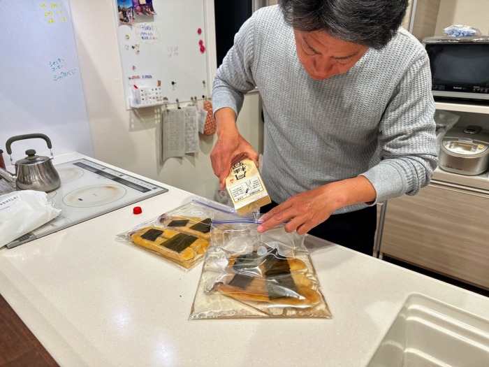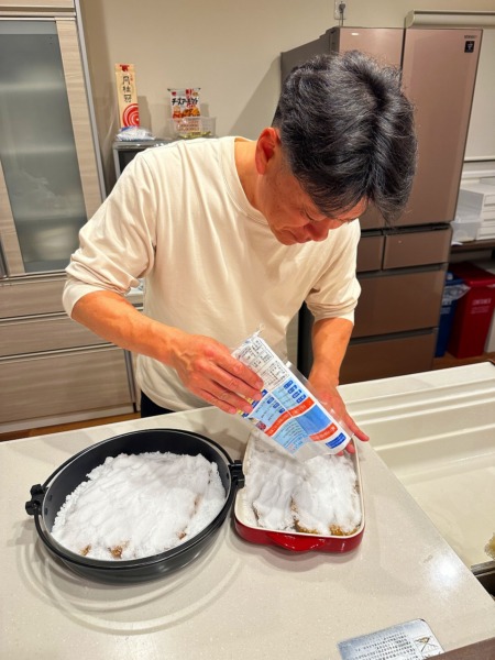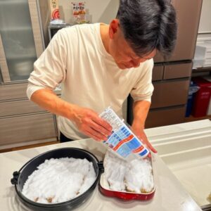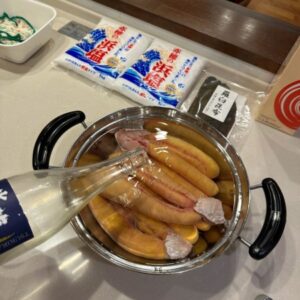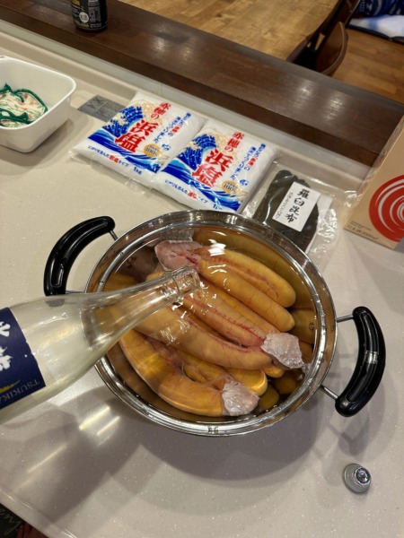 水と少量のお酒を入れて冷蔵庫に2日間置きます。