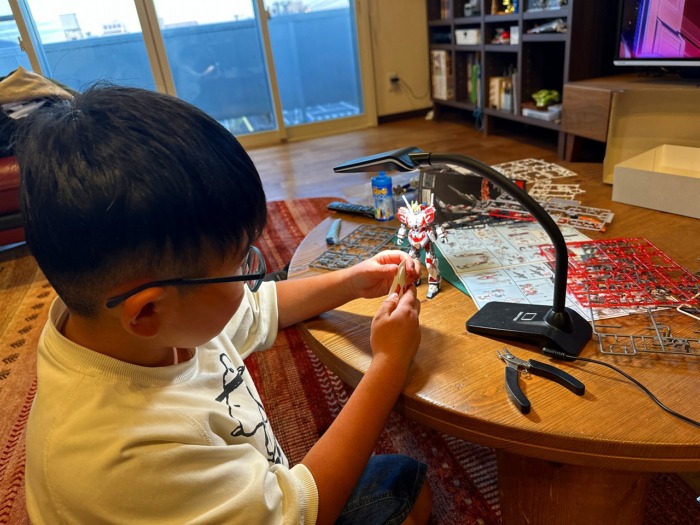息子が一人でまぁまぁ難易度のあるプラモデルを完成
